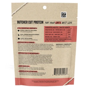 Packed with whole animal butcher cut protein, these high-value freeze-dried treats are full of naturally occurring vitamins and minerals, because your pet deserves the best. Vital Essentials butcher cut raw protein is the perfect guilt-free treat that also builds strong muscles for more play, naturally supports digestive and oral health, and provides essential nutrients to support your cats vitality.