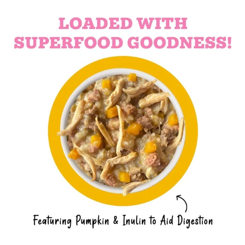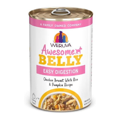 Weruva Awesome Belly features chicken, white rice, and pumpkin to support easy digestion.