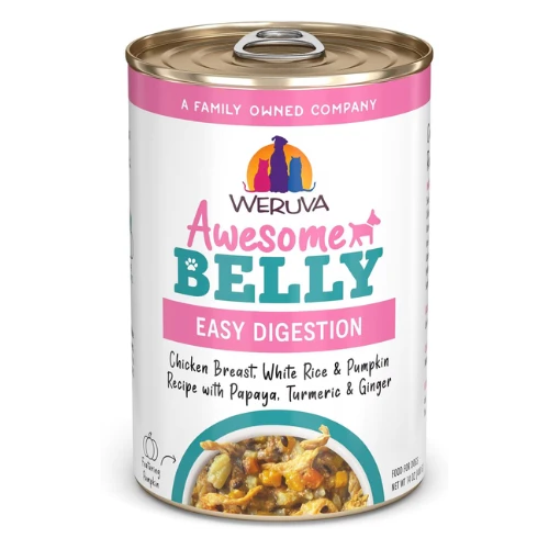 - Weruva Awesome Belly features chicken, white rice, papaya, turmeric, and ginger to support easy digestion.