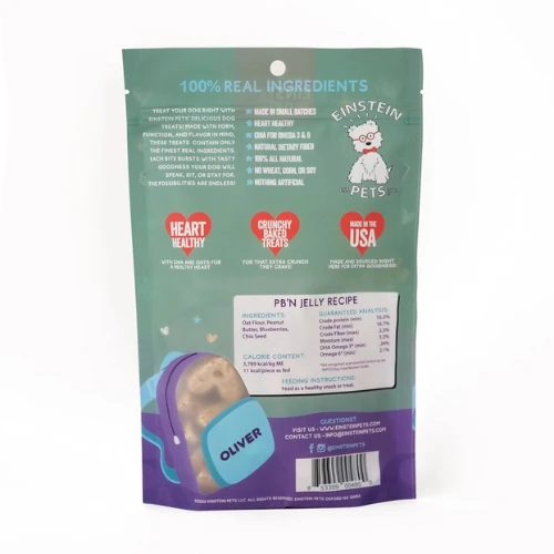 Treat your furry friend to the wholesome goodness of Wonder Bark Everydays PB’N Jelly Dog Biscuits. Crafted in small batches, these crunchy treats are made with form, function, and flavor in mind, so your pup gets the very best. With only the finest human-grade ingredients and zero preservatives, you’re providing a snack that’s as natural as it is delicious. Packed with heart-healthy chia seeds rich in Omegas 3 & 6, these biscuits support your dog’s overall well-being. Plus, they’re 100% all-natural and free from wheat, corn, and soy, making them a perfect choice for dogs with sensitive stomachs or dietary restrictions. Give your best friend a treat that’s both satisfying and nourishing!
