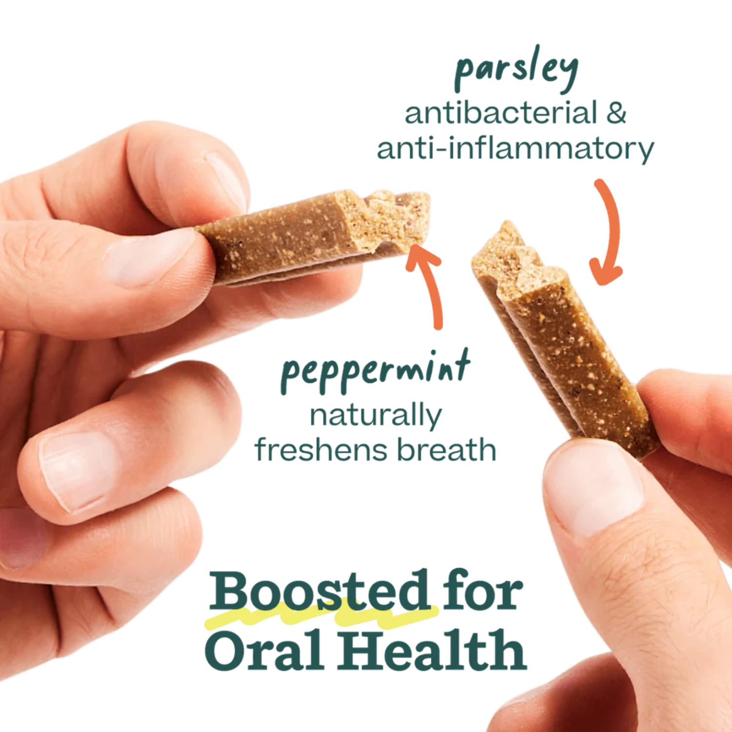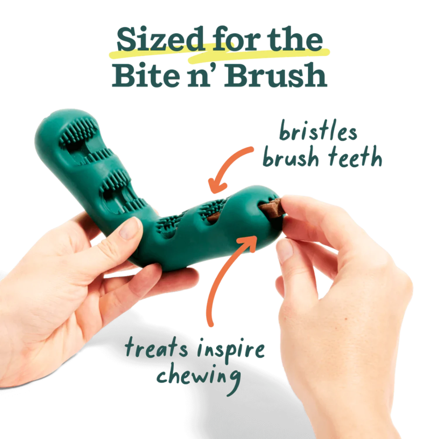 Pair with the Bite n’ Brush to extend the length of the treat, allowing the active ingredients even more time to work. The v-shaped design cleans all sides of the teeth and mouth, letting your dog scrub plaque and tartar off themselves!