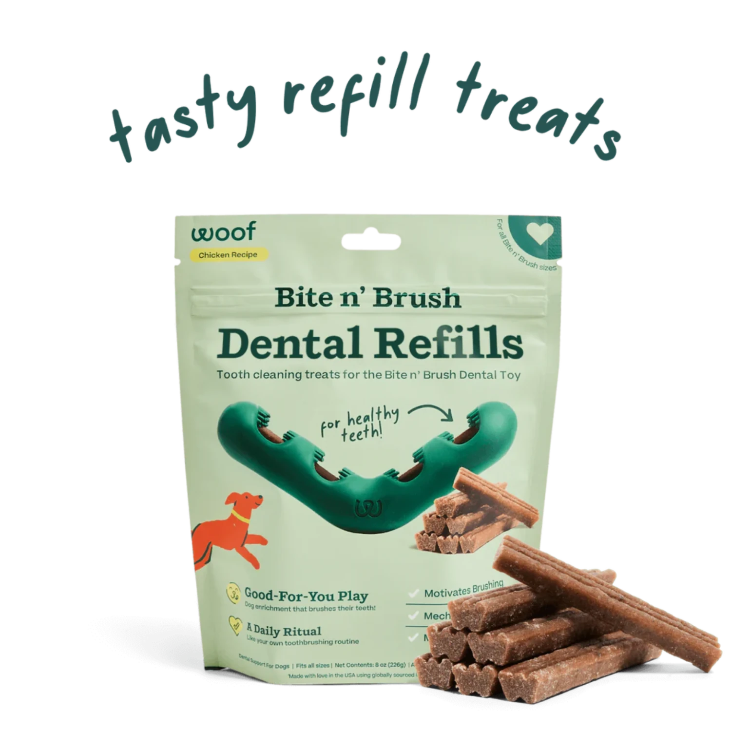 You brush your teeth—now your dog can brush theirs! Bite n’ Brush Refills give your dog cleaner teeth with every bite.