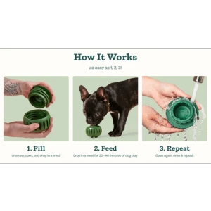 With slots on the top to prevent drool from spilling onto your floors and weighted on the bottom so treats won’t tip out, the Pupsicle is as clean and mess-free as an enrichment toy can be. Best of all, the Pupsicle is dishwasher-safe and unscrews in the middle, making it straightforward (and easy) to both clean and fill.