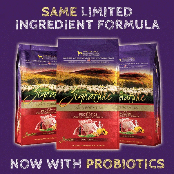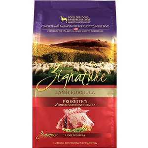 Fill your best friend’s bowl with wholesome nutrition when you feed them Zignature Lamb Limited Ingredient Formula Grain-Free Dry Dog Food. Your pup will enjoy a delicious dinner made with real, farm-raised lamb from New Zealand, wholesome peas, chickpeas, and flaxseed. This meat-first recipe offers pups the protein they need to thrive, while Zignature’s limited ingredient recipe throws out troublesome ingredients like chicken, corn, wheat, soy, and potatoes, creating peak hypoallergenic, low-glycemic nutrition. Combine that with key antioxidants, essential fatty acids, and a complete spectrum of vitamins and minerals for a well-rounded meal that goes beyond nature to become your pet’s signature food for life.