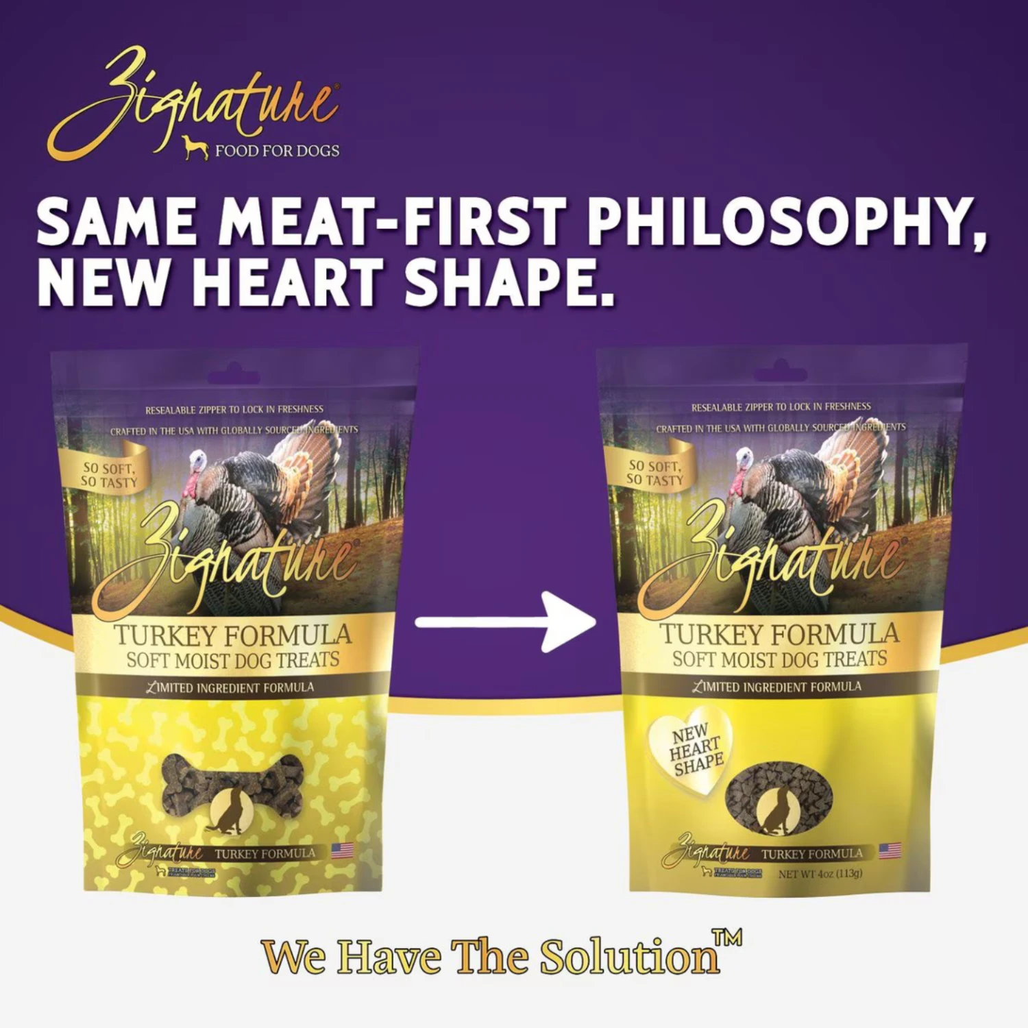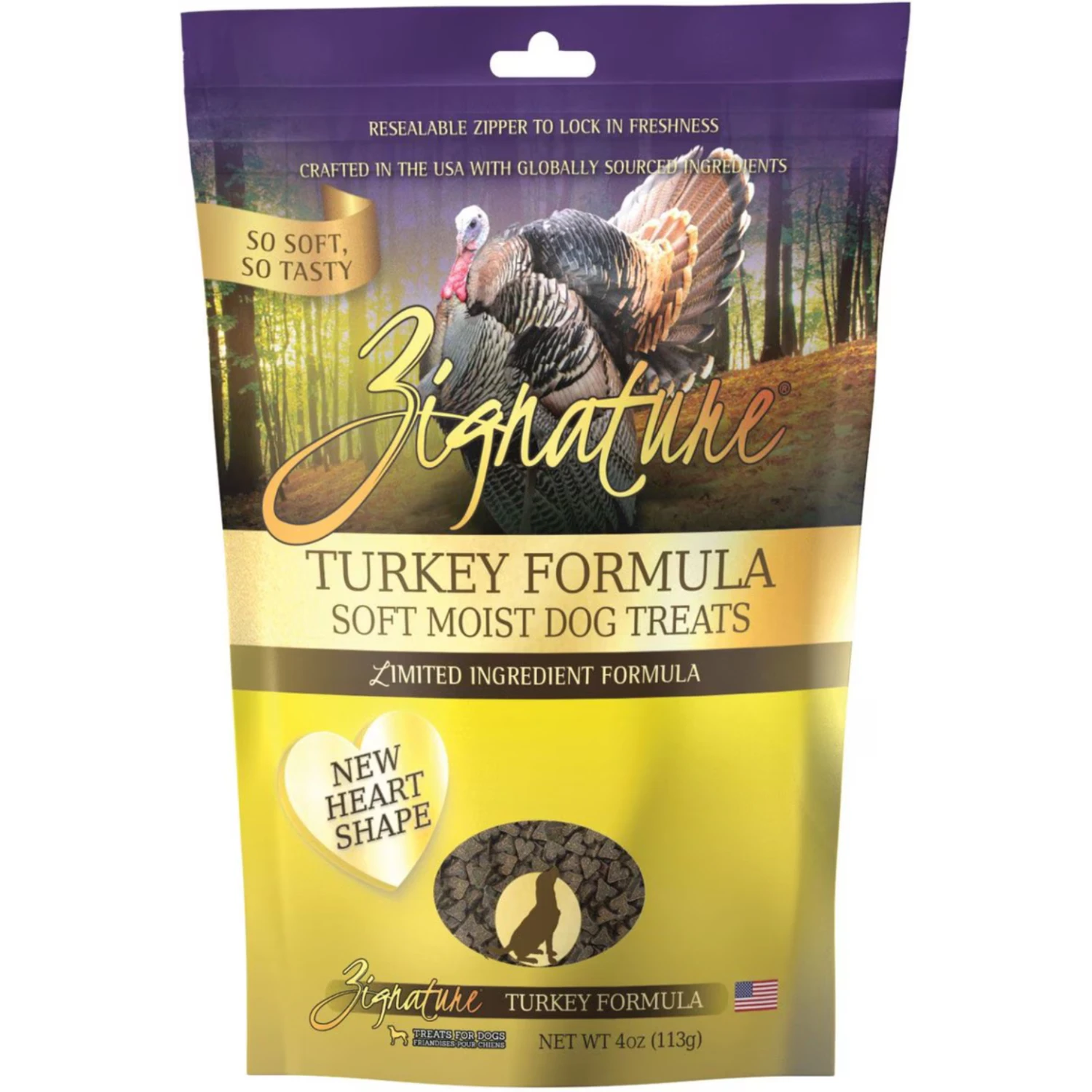 Zignature® Soft Moist Dog Treats are formulated with the same limited ingredient philosophy as our dry and canned foods. Delivering a high-quality, delicious treat for your canine companion. By excluding ingredients your dogs do not need, we are able to bring you a treat that is simple yet so tasty. At Zignature®, “We Have The Solution” for your dog’s particular taste. To bring out the best in dogs, Zignature® is committed to providing animal or fish protein as the first ingredient as protein is essential for a healthy diet. Zignature® Soft Moist Dog Treats are made with animal or fish protein first, followed by a simple list of other wholesome ingredients.